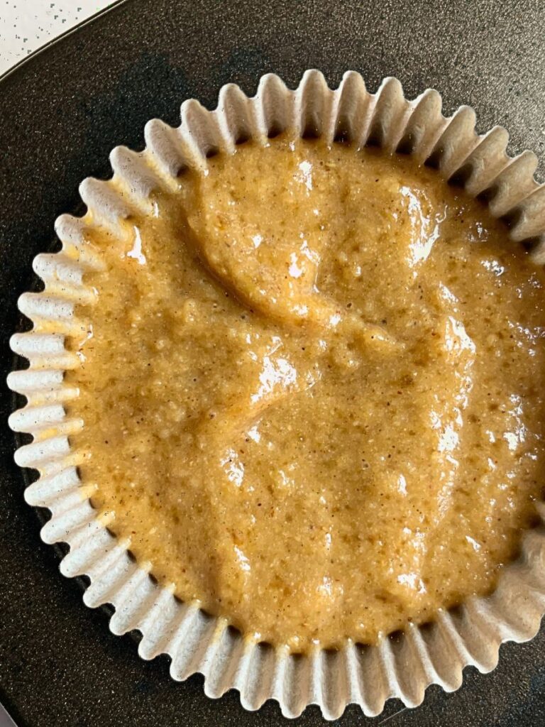 • Pour batter into lined muffin tin and place in the oven to bake for 22-25 minutes or until golden and muffins are toothpick clean.
