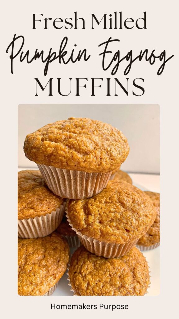 Cozy Pumpkin Eggnog Muffins made with fresh milled flour! Moist, rich, and full of festive fall flavor—your new favorite autumn indulgence.